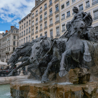 Commençons par la célèbre Place Bellecour ou se trouve en son centre la majestueuse statue équestre de Louis XIV de François-Frédéric Lemot, représentant le roi en empereur romain symbolisant le pouvoir royal de la ville.